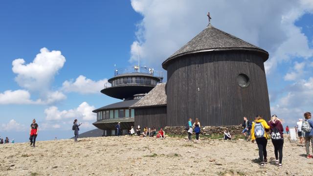 Auf der Spitze der Schneekoppe war viel los. Ganze Schulklassen und jede Menge Wanderer genossen des Ausblick und die zum Tal verhältnismäßig frische Temperaturen mit ca. 17°C. Genau hier oben verläuft auch die Grenze zwischen der Tschechischen Republik und Polen. Man hat einen sehr schönen Ausblick in alle Richtungen. Ein Besuch hier oben, der sich auf jeden Fall gelohnt hat und das Highlight des Tages war.