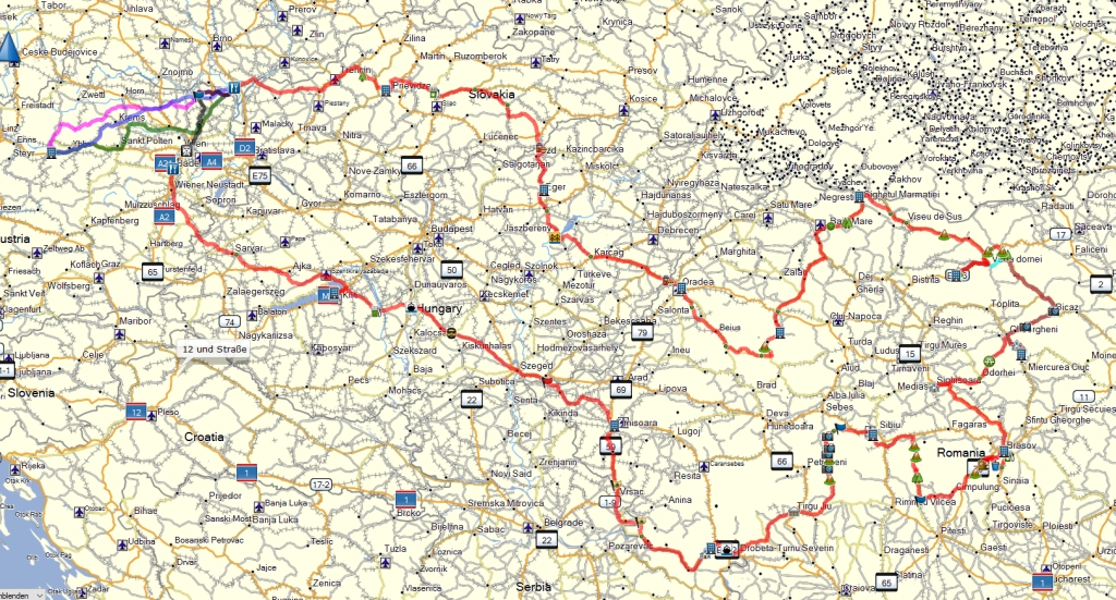Ich fahre von Hamburg mit dem ÖBB-Autozug nach Wien und koppele dort am 2.6.2017 mit Stefan, der aus „Staufen im Breisgau“ per „Wasserbus 2“ anreist. Von Wien geht es über Ungarn, Rumänien, Serbien, Rumänien, die Slowakei und Tschechien zurück bis Wien und dann per ÖBB nach „Good Old Germany“ oder per Krad nach Staufen. Insgesamt knapp 4000km werde ich nach heutigem Stand abspulen. Bei Stefan sind es knapp 2000km mehr.