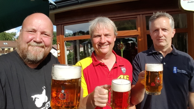Am gestrigen Abend haben wir noch auf der Sonnenterasse in Hohenelbe bis zum Sonnenuntergang gemütlich gesessen. Direkt unter uns floss die Elbe. Hier ist sie noch wie die Lenne in Eschershausen. Das Essen war gut und die Biere mit 0.96€/0,5 L die Günstigsten der ganzen Woche. Mit fallenden Temperaturen haben wir uns dann in die Bar verzogen und noch ein wenig Fußball EM mit einer Horde Thüringer Jungs geschaut.