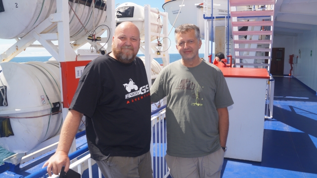 Zu uns gesellten sich auch 4 Mopedfahrer aus Segeberg – es war ein bunter und lustiger Abend. Die Preise an Bord sind entgegen der Passagiereimer der großen Touristenlines sehr zivil. Ein halber Liter Gezapftes kostet schlanke 2,80€. Die FLAVIA befördert zum großen Teil LKWs mit ihren Piloten. Von daher alles nachvollziehbar.