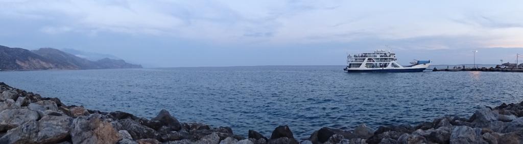 Der Flug verlief normal. Nach knapp 3 Stunden landeten wir auf dem Flughafen von Chania. Das Wetter war warm, es war bewölkt. Mit dem kleinen TUI Transferbus und 6 weiteren Gästen starteten wir in Richtung Paleochora. Die ersten Gäste luden wir nach einer Hafenrundfahrt noch in Chania und Platanias aus und nach etwas über 2 Stunden Busfahrt kamen wir dann gegen 15.40 Uhr am Libyan Princess in Paleochora im Südwesten Kretas an. Das Wetter durch die Berge war sehr durchwachsen, es regnete auch mal ordentlich.